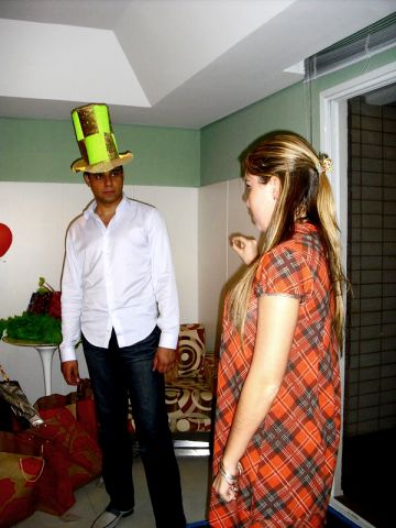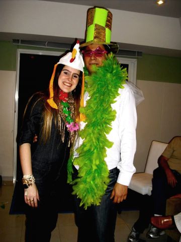 Os noivos e Du com os grampos da brincadeira